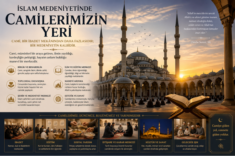 İslam Medeniyetinde Camilerimizin Yeri İslam medeniyetini anlamak, yalnızca bir inanç sistemini değil; aynı zamanda bir şehir anlayışını, bir hayat düzenini, bir estetik duyuşu ve bir insan tasavvurunu anlamak demektir. Bu büyük ve köklü medeniyetin kalbinde ise cami vardır. Cami, İslam toplumunun yalnızca ibadet edilen mekânı değil; ruhun toplandığı, kalplerin birleştiği,…